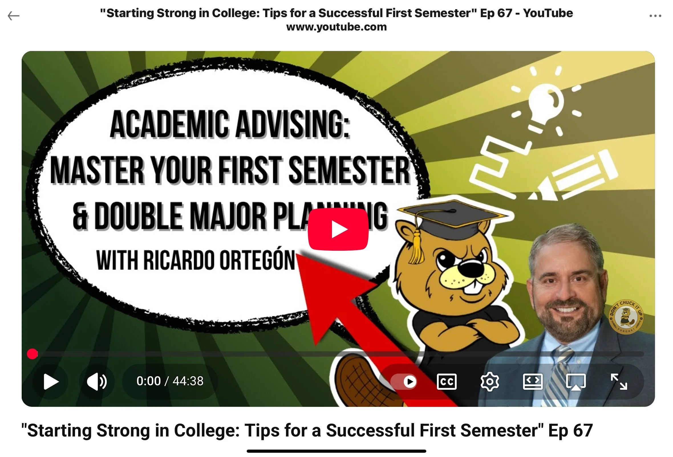 In this engaging conversation, Dr. Ortegón draws upon his three decades of experience in higher education as a former Vice President of Enrollment Management and Director of Academic Advising to offer actionable advice for students who want to make the most of their college experience from day one.